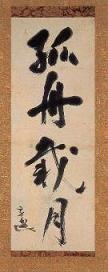千利休は、禅の教えを茶に取り入れ「侘び茶」を大成します。本作は、現存する唯一の利休の一行書です。一般的に一行書は禅僧特有のものであり、禅宗に深く帰依した利休ならではの作です。