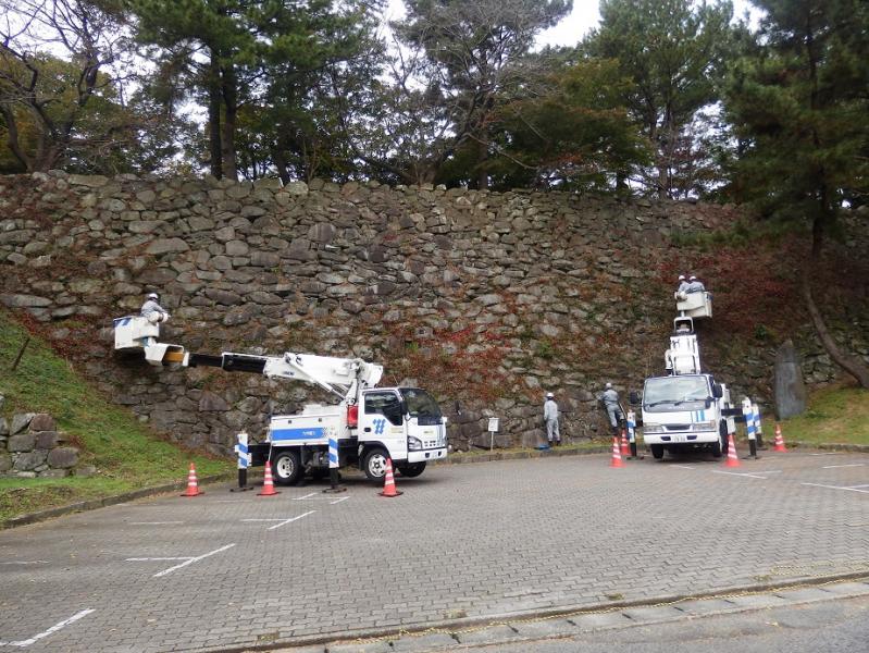 くるめ「小さな親切」運動の会会員の九州電力株式会社久留米営業所の方々などの手による、地域貢献活動の一環として久留米城跡の清掃活動が行われ、石垣が綺麗になりました。