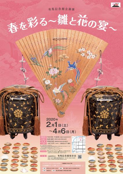 | 開催期間 | 令和元年度有馬記念館企画展「春を彩る~雛と花の宴」 ・会 期 令和2年2月1日(土)~令和2年4月6日(月) ・休館日 毎週火曜日(祝祭日と重なる場合は翌日) |