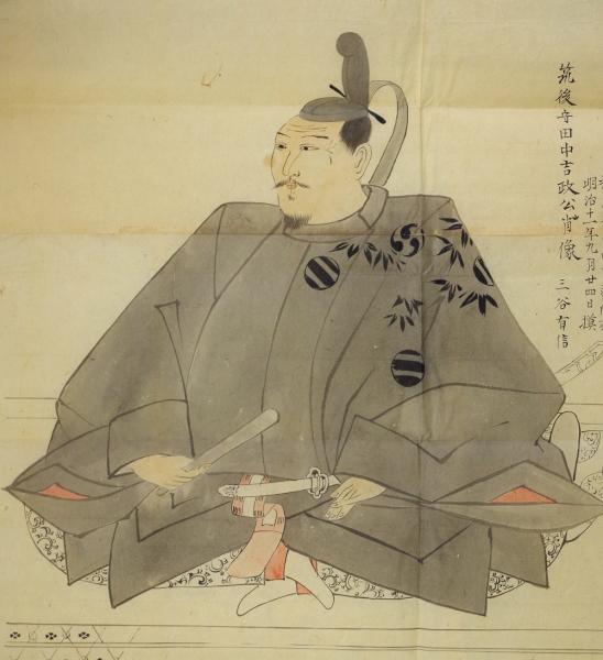 明治11年(1878)に、「櫛原街」(現久留米市)の個人蔵の田中吉政肖像画を、三谷有信が模写したものです。