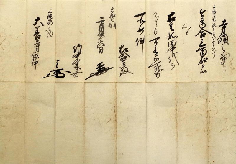 元和6年(1620)に田中家が改易になると、江戸幕府は筑後一国を接収するため、上使として松倉重政・竹中重義を派遣しました。これは、翌年2月26日付けで松倉・竹中から三潴郡大善寺宛てに出した文書で、寺領300石を安堵することが記されています。