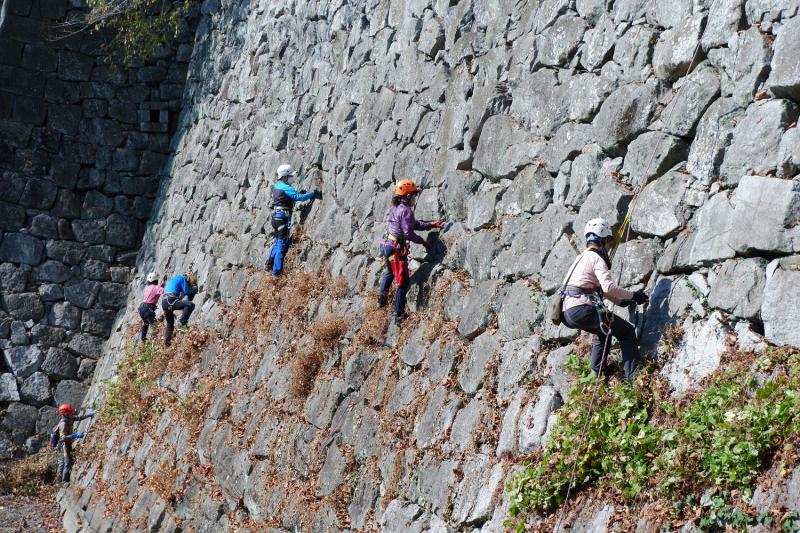 10月31日(日)、久留米山岳会の皆様十数名により、久留米城石垣の除草作業が行われ、往時を偲ぶような石垣が姿を見せています。 正面石垣は堀に面しているため高所作業車を使えません。そこで、久留米山岳会の皆さんが日頃培った登山技術を使い、ロープで吊るされた状態で、手作業で石垣に蔓延った草を一つ一つ丁寧にとっていきました。 有馬記念館では、今月29日(月)まで「有馬の城づくり、町づくり」展を開催しています。 久留米城跡見学とともに、有馬記念館への皆様のご来館をお持ちいたしています。