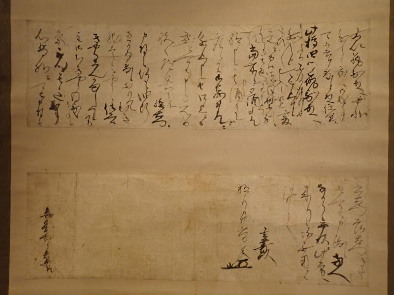 久留米藩初代藩主豊氏が家臣の圓岡勘兵衛(まるおかかんべえ)に宛てた書状で、福岡藩主である黒田筑前守(ちくぜんのかみ、長政(ながまさ)あるいは忠之(ただゆき))への進物の使者と、「元日祝」の準備を指示しています。豊氏は久留米城の整備に際し、黒田長政に相談して支援を受けた縁があり、圓岡に口頭でも懇切に伝えるよう指示しています。