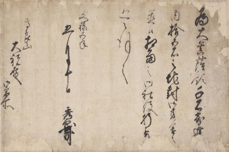 文禄5年(1596)5月10日付けで、小早川秀包から高良山大祝(おおほうり)宛てに出された文書で、高良山「大菩薩領千石寄進」のうち15石の地を遣わすと記しています。